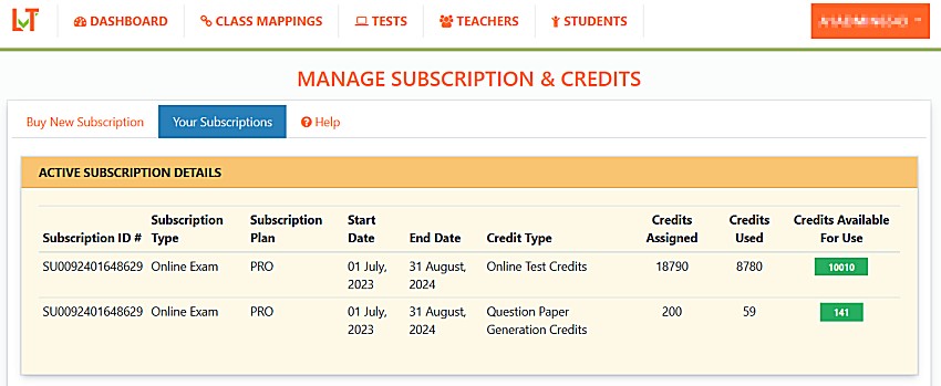 9. Login with the teacher ID to create question papers as well as conduct online tests.